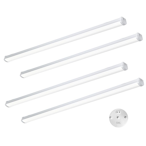 be studied 4FT Linkable 60W LED Shop Lights with Socket 3000K 4000K 6000K 6000LM for Garages Shop, Linear Work Light Fixture Hanging or FlushMount with Plug, ETL 4 Pack