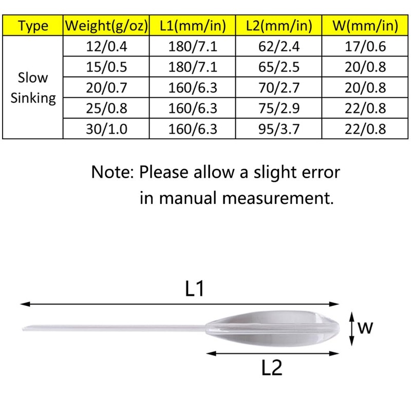 【Optional】Fishing casting bobbers have two types - floating or slow sinking, and six weights to choose from - 12g/0.4oz, 15g/0.5oz, 20g/0.7oz, 25g/0.8oz or 30g/1.0oz. Different choice of models and weights are meeting your needs for different waters, casting distances and fish species.