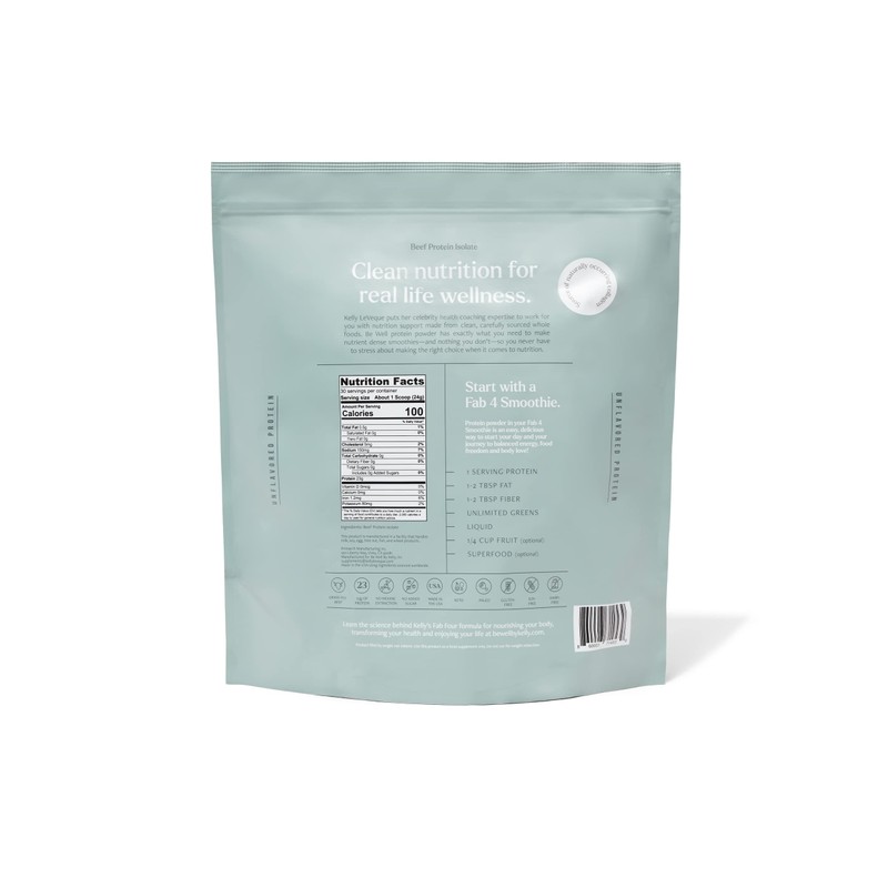 Be Well by Kelly Unflavored Grass-Fed Beef Protein Powder, 23G of Protein & Zero Carbs (1 Ingredient, 30 Servings) 9 Amino Acids + 3 BCAAs No Soy, No Dairy, Stevia-Free, No Sugar Added 1.59lb 720g