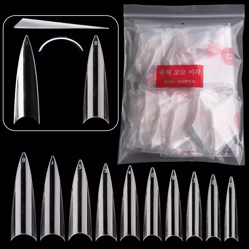600 pcs Acrylic Middle Long Stiletto Nail Tips Pointed Sharp False Nails