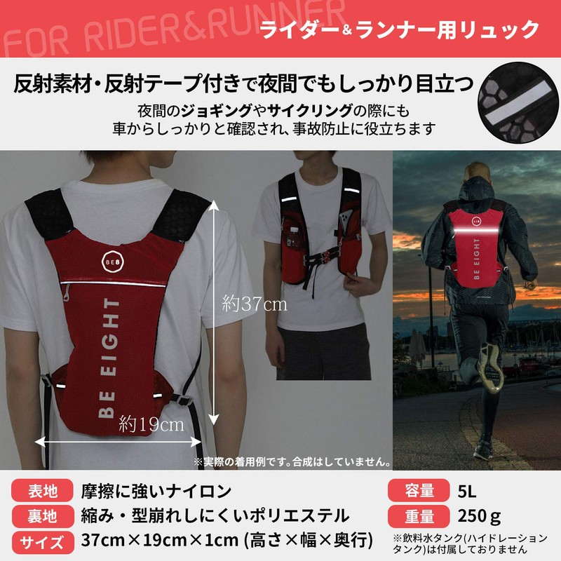 BE8 Running Backpack, Sports, Ultra Lightweight, 8.1 oz (230 g), Light Reflective, Breathable, Waterproof, 1.3 gal (5 L), Red