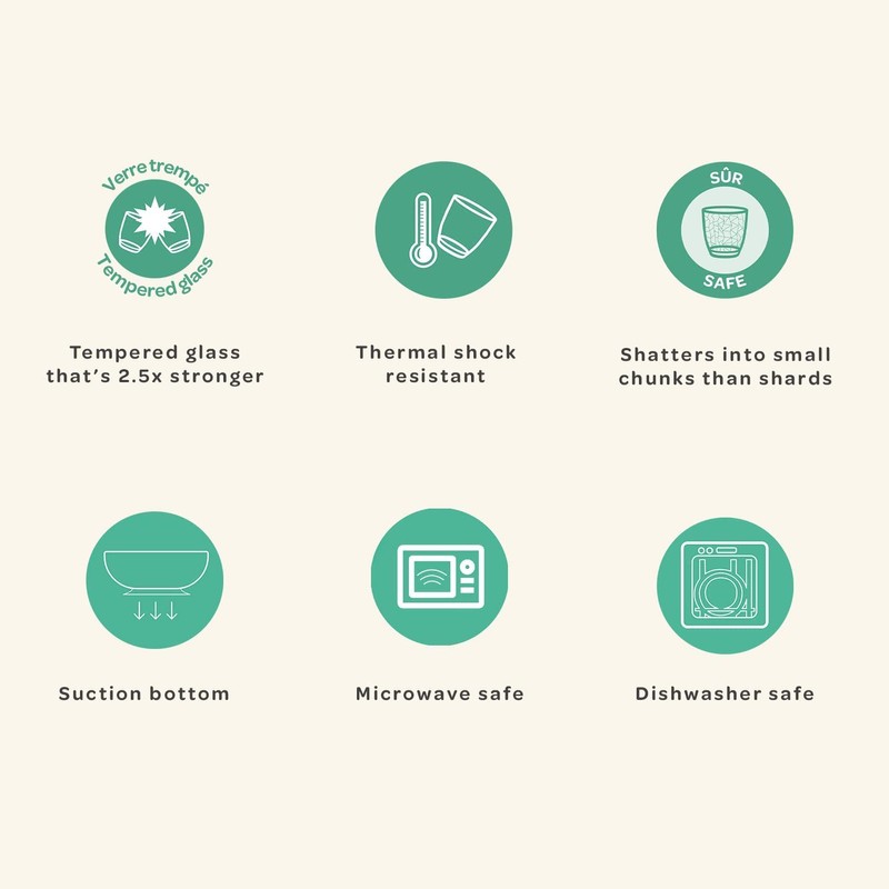 BEABA BEABA 3-Piece Duralex Glass Meal Set with Silicone Suction, Toddler Plate and Baby Bowls with Suction, Non Slip Kids Dinnerware Set, 2.5x Stronger than Regular Glass, (Rain)