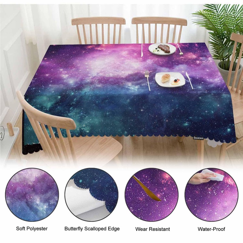 - ❤ 1. TABLECLOTH MATERIAL - - Galaxy Space TABLECLOTH is made of polyester fabric, soft touch, spill-proof, stain & wrinkle resistant. Table cloth can effectively prevent your table and furniture from scratch, heat, daily wear and tear;