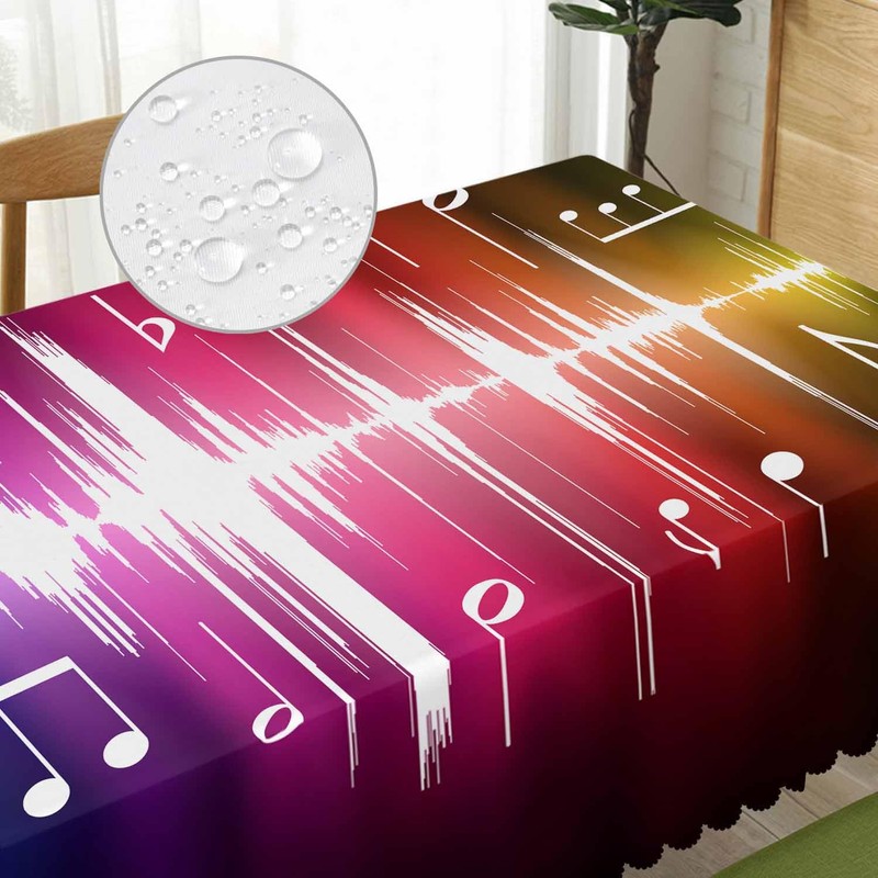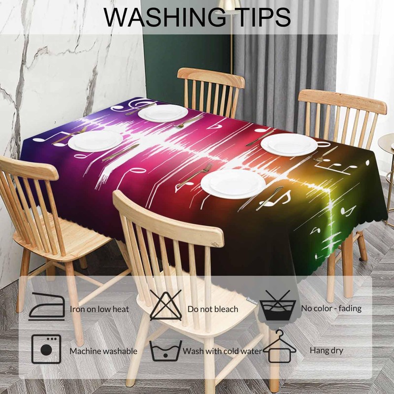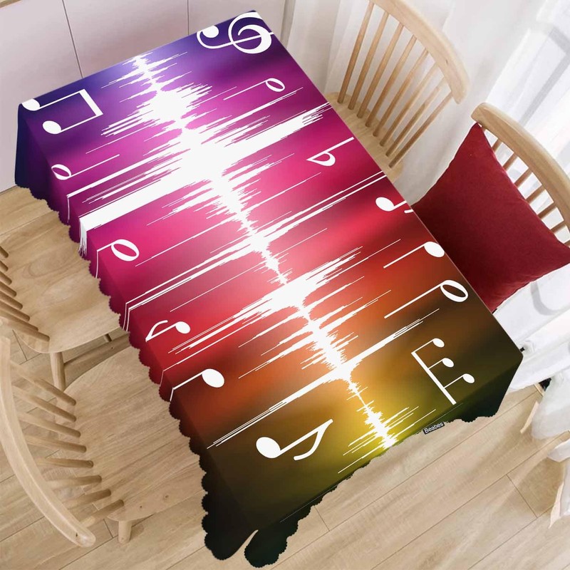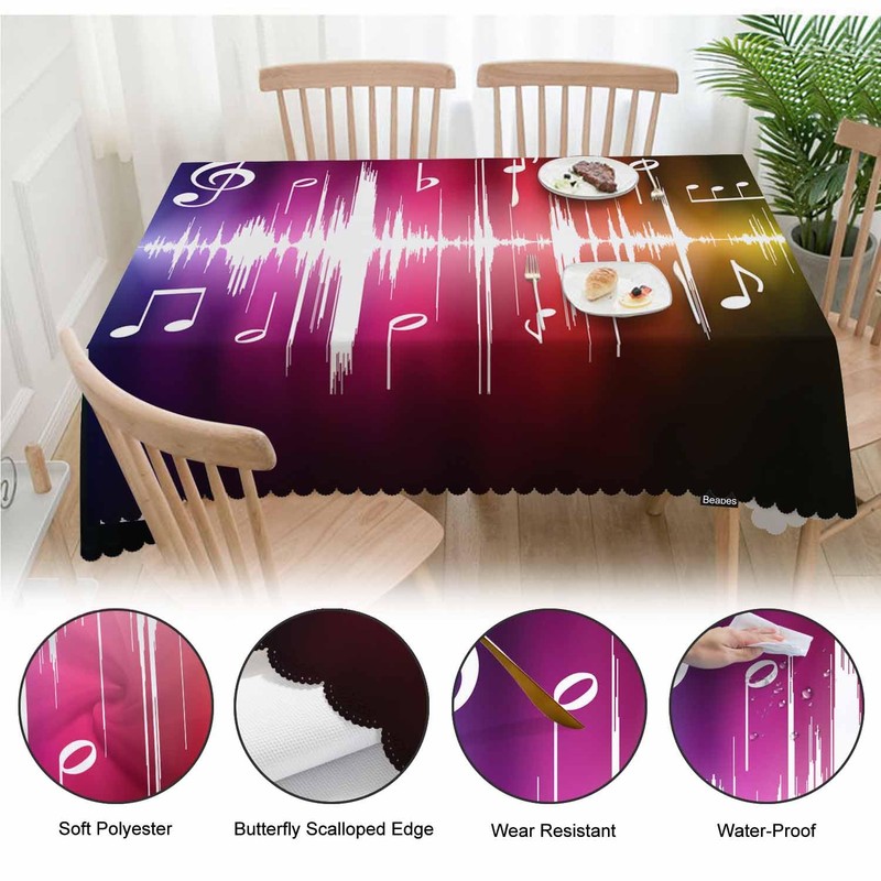 - ❤ 1. TABLECLOTH MATERIAL - - Music Notes TABLECLOTH is made of polyester fabric, soft touch, spill-proof, stain & wrinkle resistant. Table cloth can effectively prevent your table and furniture from scratch, heat, daily wear and tear;