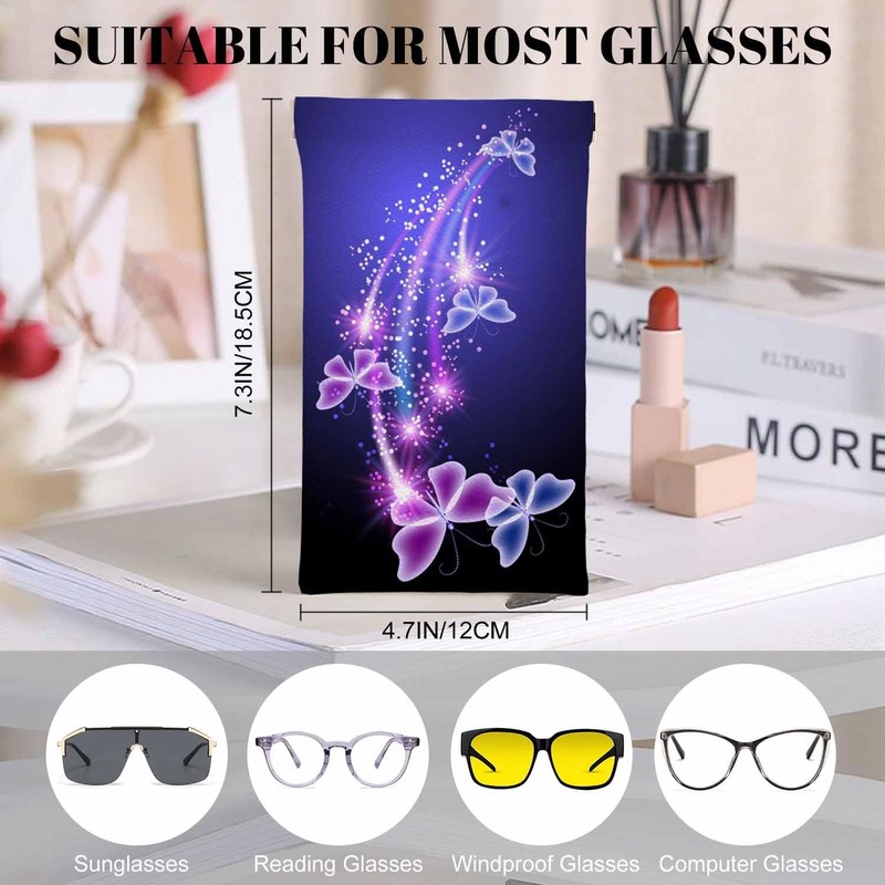 - 1. UNIVERSAL SIZE - - Butterfly Glasses Case is 7.3x4.7 inch/18.5x12 cm. The sunglass holder Suitable for most oversized sunglasses, reading glasses, swimming goggles, sports/driving sunglasses;