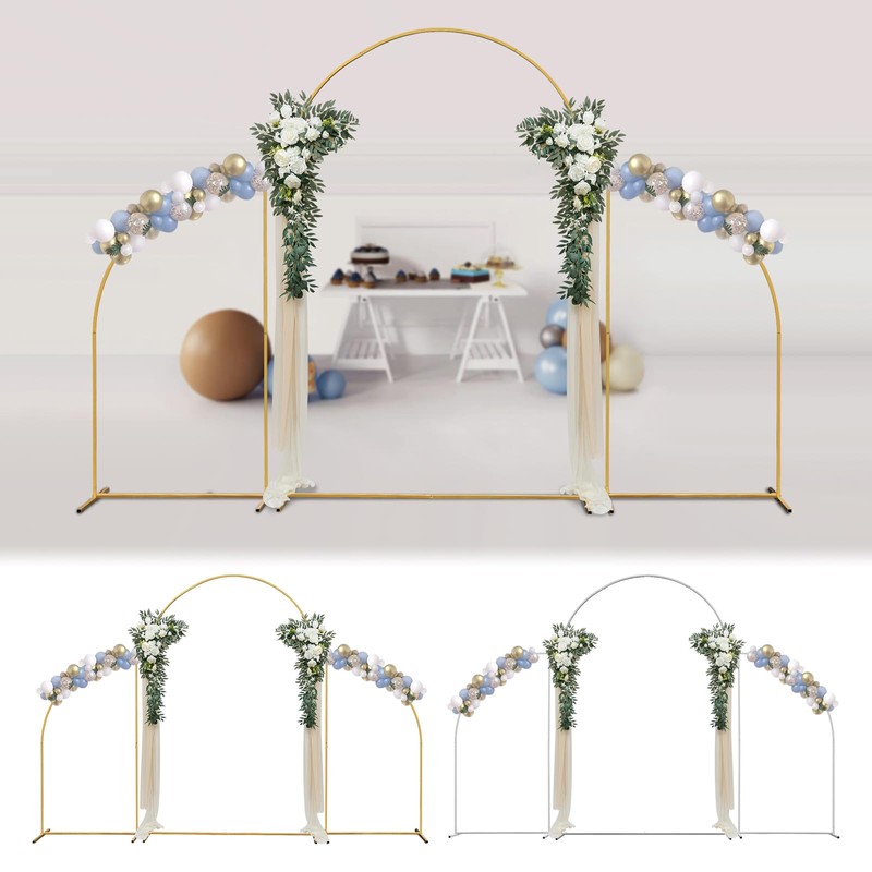 Beaccoss Gold&White Metal Wedding Arch Backdrop Stand,7.2FT, 6.6FT, 6FT Set of 3 Arched Door Frame, Backdrop Stand for for party (White B)