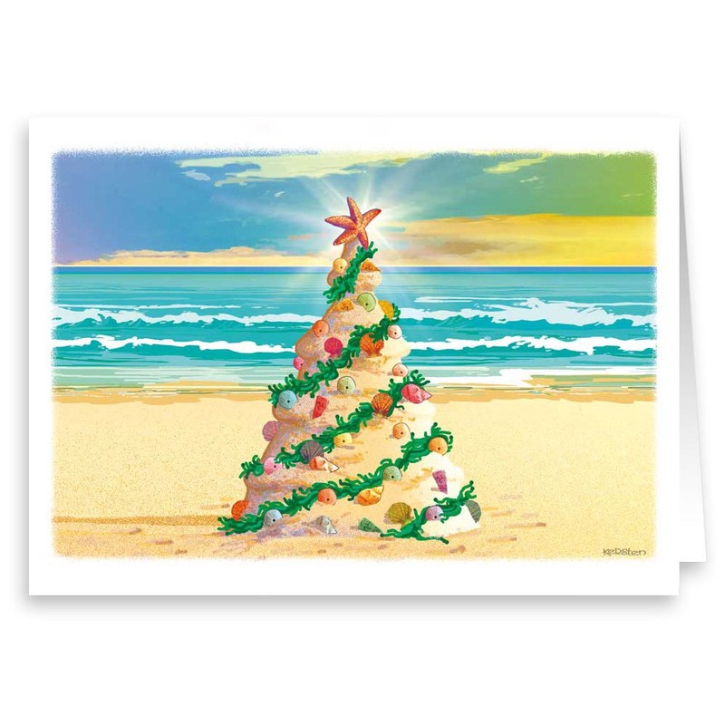 Beach Christmas Tree - Beach Theme Christmas Card 18 Cards & Envelopes