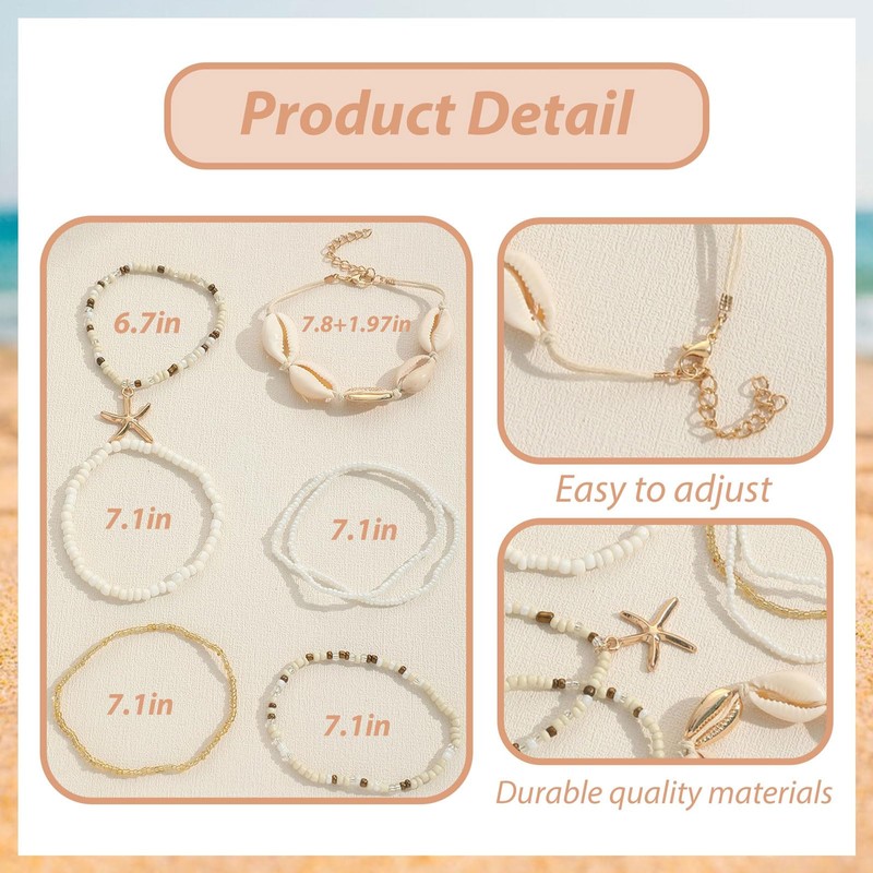 - 🌊 Adjustable Fit: Whether you're hitting the waves or lounging in the sand, our adjustable beaded bracelets ensure a comfortable and secure fit for all-day wear. Dive into summer with confidence and style.