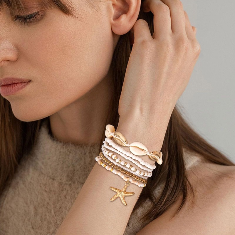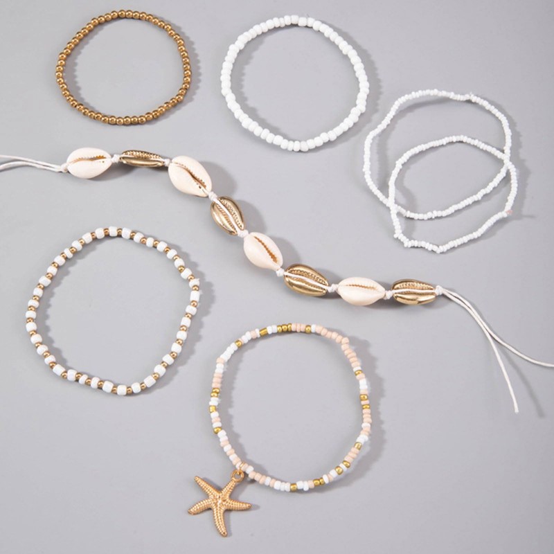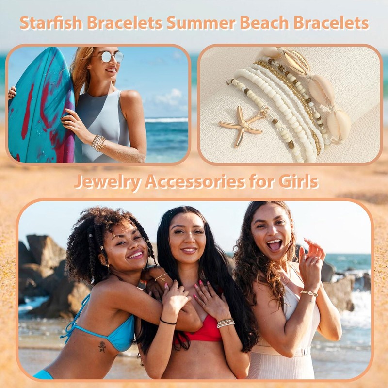 - 🐚 Stylish Beach Accessory: Elevate your summer look with our beach surfer stack bracelets. Adorned with starfish and shell charms, these bracelets add a touch of seaside charm to any outfit, making them perfect for beach days and summer adventures. shell bracelet