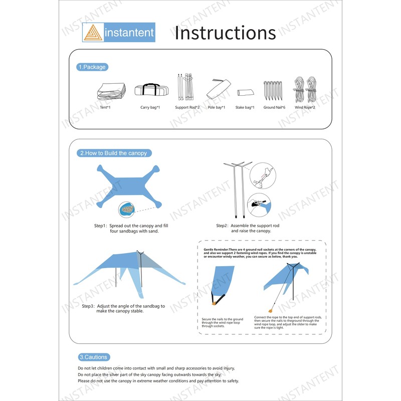 - Quick and Easy Setup: Designed for convenience, INSTANTENT beach tent can be set up in just 2 minutes by two people. No complicated ropes or tools are needed, making it perfect for hassle-free outdoor fun.