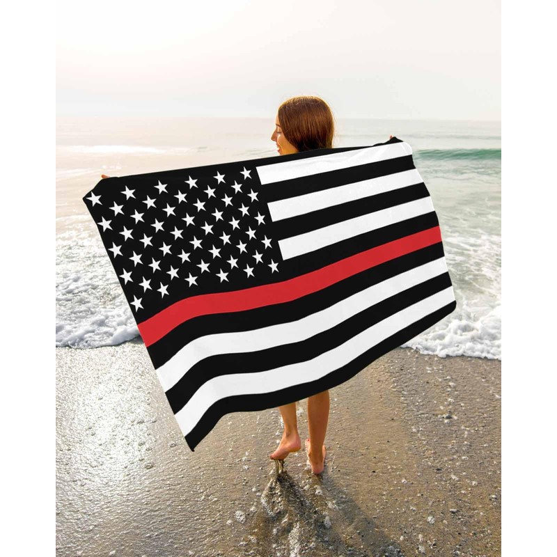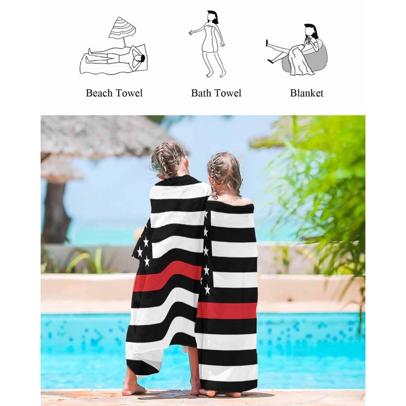 Beach Towel 35”x70” Oversized, Thin Red Line Flags American Firefighter Red Stripes Flag Lightweight Microfiber Beach Towels, Absorbent Sand Free Beach Essentials for Beach Pool Travel Camping