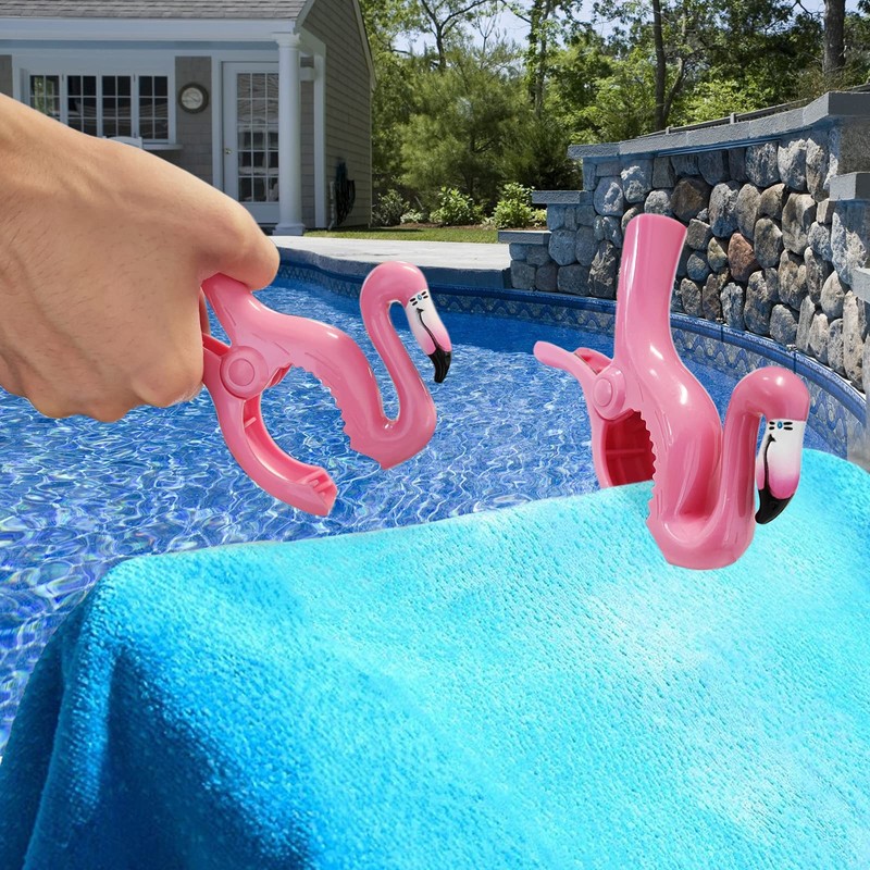 Beach Towel Chair Clips 4Pcs, Big Size Flamingo Pink, Plastic Lounge Chair Towel Clips, Pool Clips to Keep Your Towel from Blowing Away for Family Daliy Use