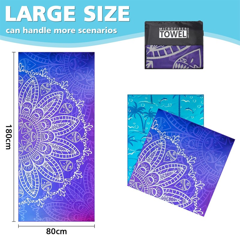 - Multi Use : This Beach Towels for Adults has many styles, various colors and beautiful appearance.This lightweight beach towel with a mesh bags can be used anywhere from the beach, sports, yoga, pool, travel and is destined to brighten up your holiday.