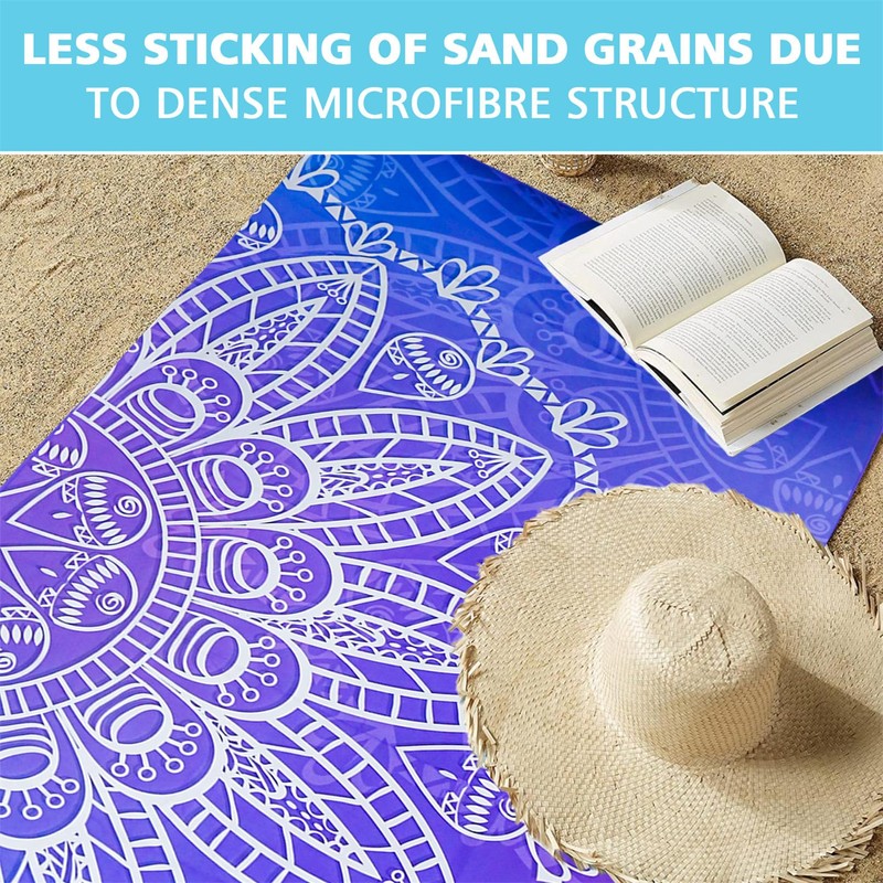 Beach Towel, Extra Large Microfibre Towel for Adult 180x80cm, Sand Free Quick Dry Lightweight Beach Towel, Double Sides with Mesh Bags for Pool, Yoga, Gym(Purple Mandala)