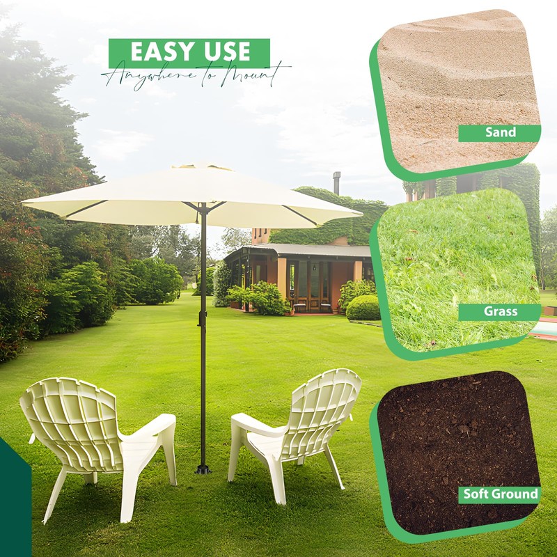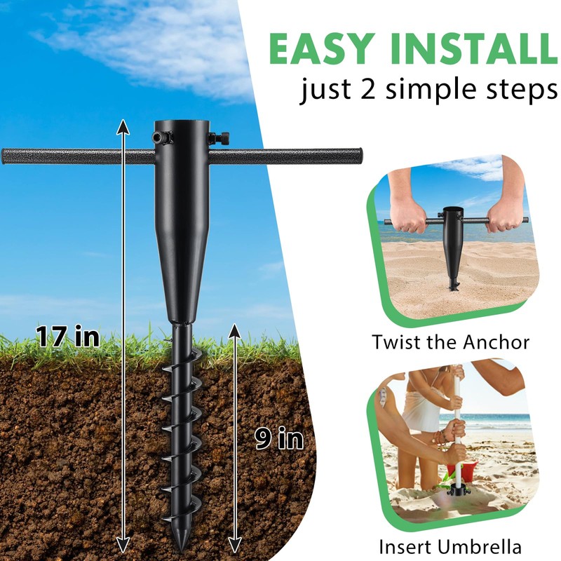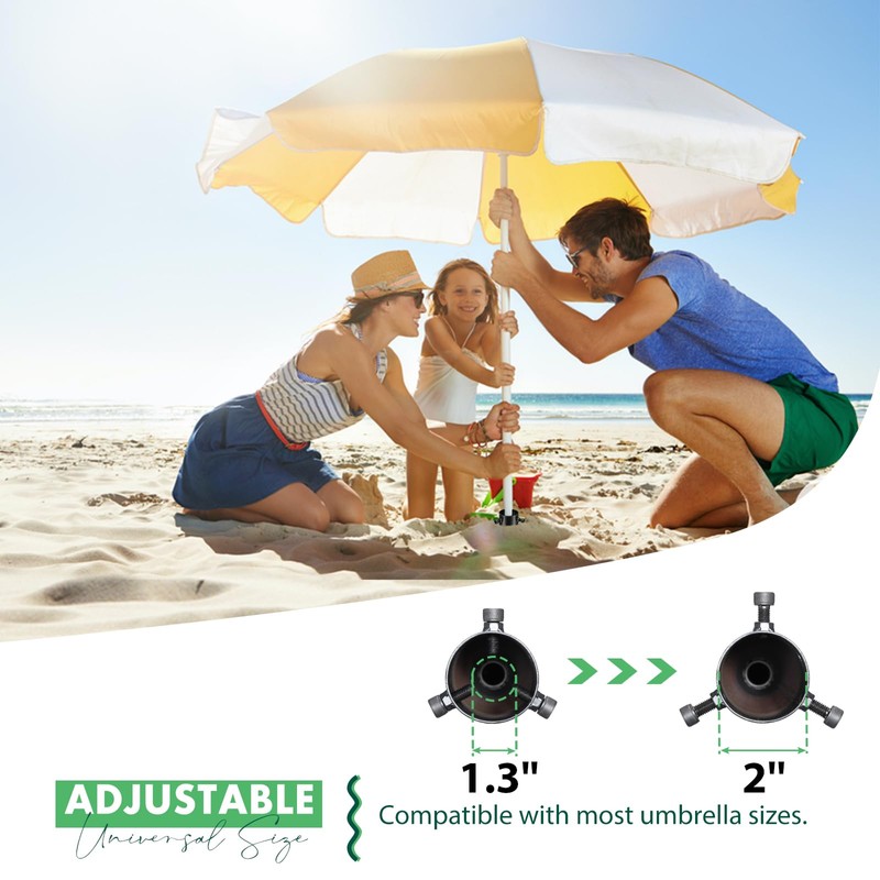 • Easy and Quick Setup: No tools, no hassle. Just twist our umbrella base into the soft ground, and slide in your umbrella. The key to its stability? Stuffing the base with enough sand for a firm grip that stays put all day long.