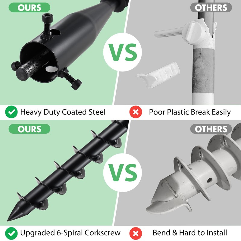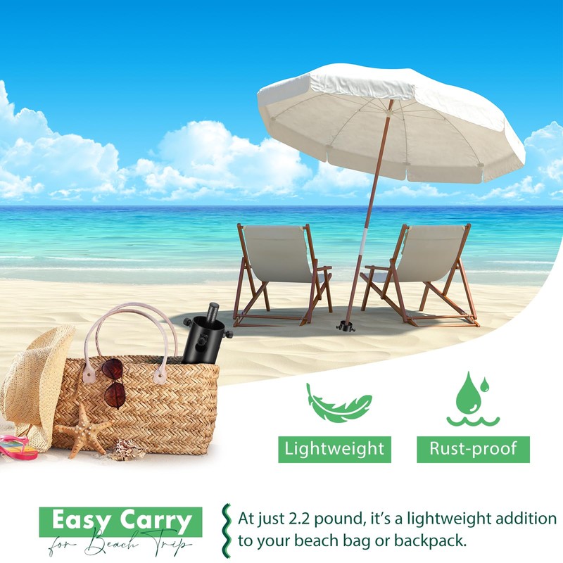 • Lightweight and Versatile: Weight only 2.2 lbs, Feblomst outdoor umbrella stand is the perfect balance of portability and performance. Ideal for garden grass, beach sand, and other soft ground. This sand anchor accommodates poles from1.3 to 2 inches in diameter.