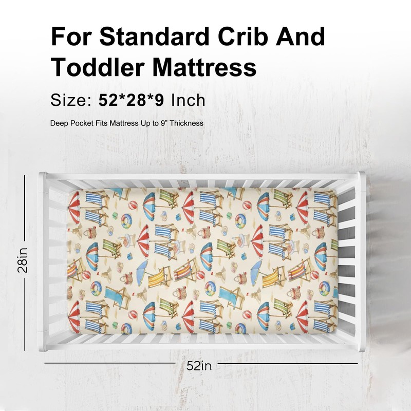Beach Vacation Seaside Fitted Baby Crib Sheets for Girl Boy 52"x28" Beach Days Coastal Crib Mattress Covers Soft Breathable Hawaiian Summer Time Baby Sheet for Standard Crib and Toddler Bed Mattress