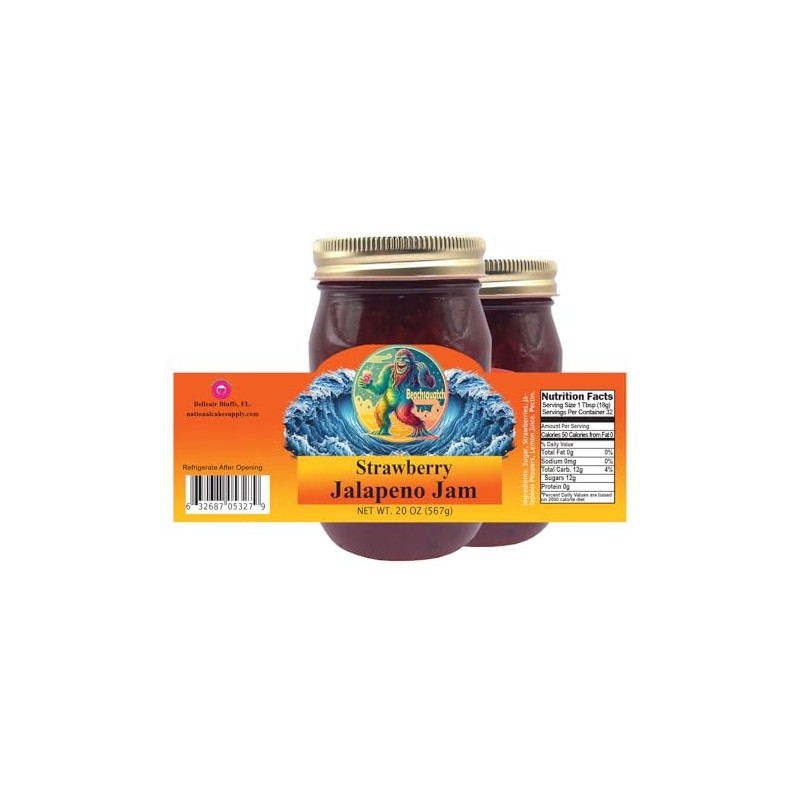 - Beachsquatch Strawberry Jalapeno Jam is a refreshing and mouth-watering taste that is perfect for spreading on toast, biscuits, cakes, pudding, pies, yogurt, sandwiches, cocktail sausages, meats, waffles, muffins, and more.