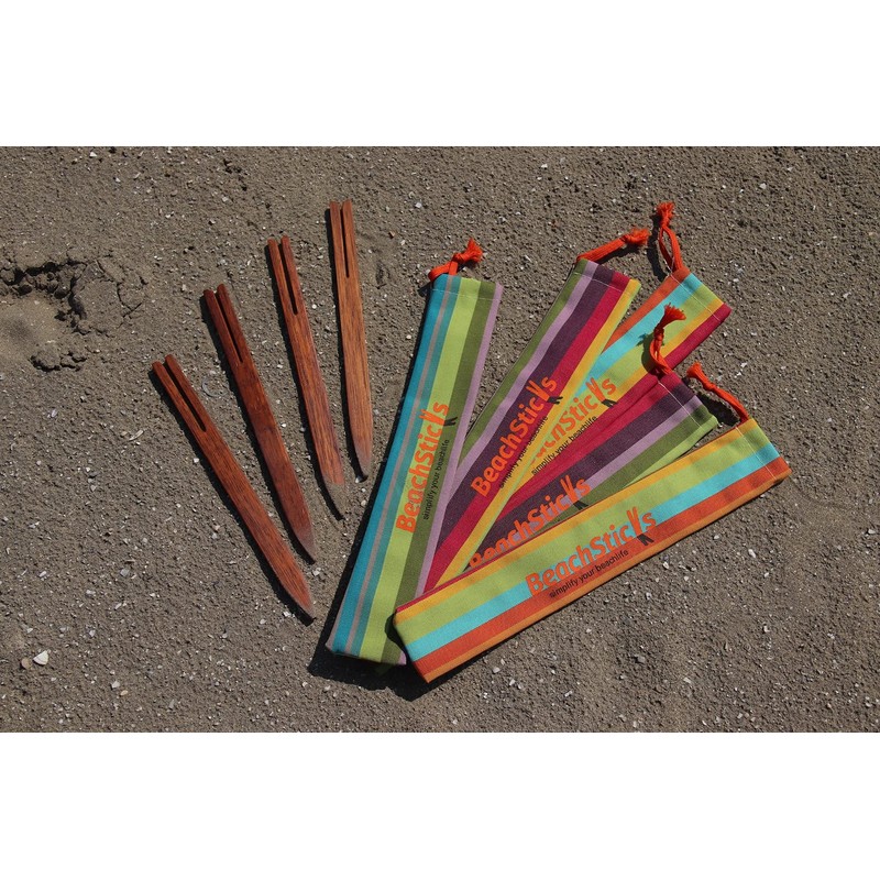 Beachsticks Rainbow wood sticks which hold your beach towel tightly and securely to the sand even in case of wind