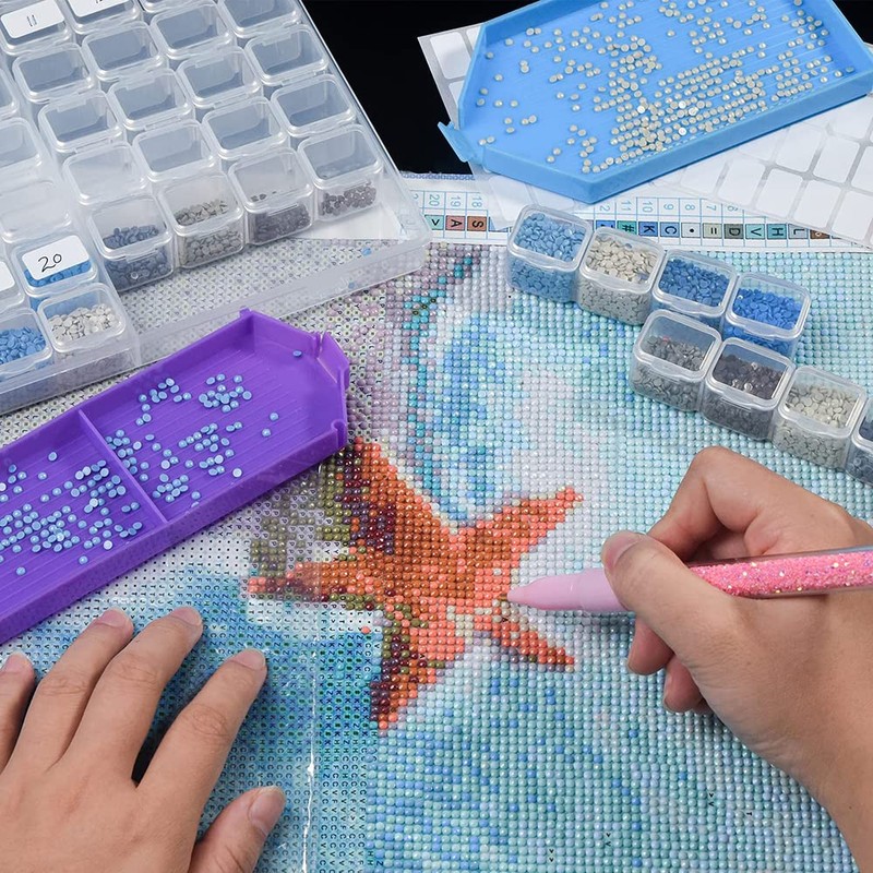 • 【Excellent Design】The diamond painting box has 56 mini compartment grids for storing various small items. And each grid can be opened separately, and the small grid is packed in a large box to double seal your stuff