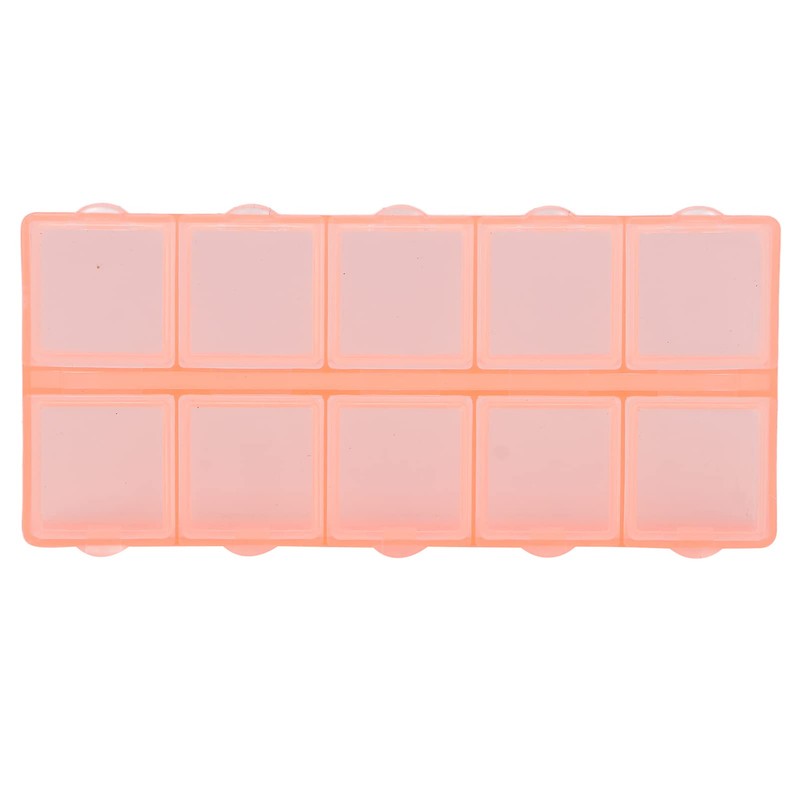 Bead Containers, 10 Compartments Durable Wear Resistant Portable Transparent Multifunctional Plastic Jewelry Organizer (Orange)