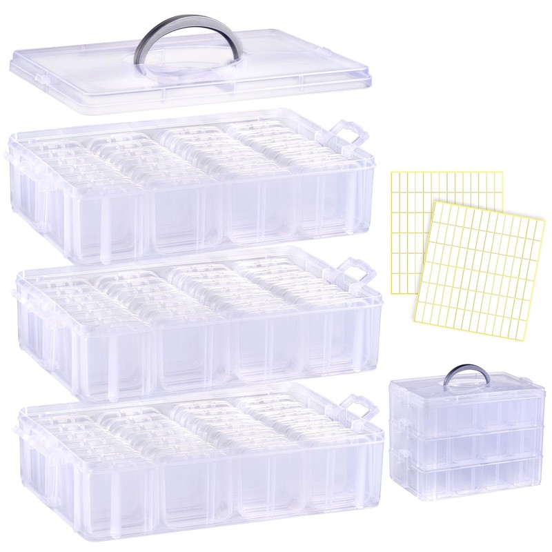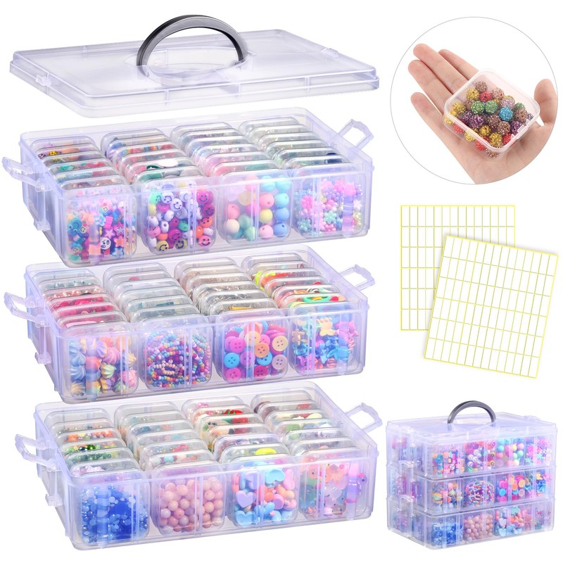 - Ultimate Organization Set: This bead organizer includes a spacious three-tier stackable outer box and an impressive 84 individual clear mini storage boxes, along with 2 sheets of stickers for labeling and personalization, ideal for organizing jewelry, crafts, screws, and beads.