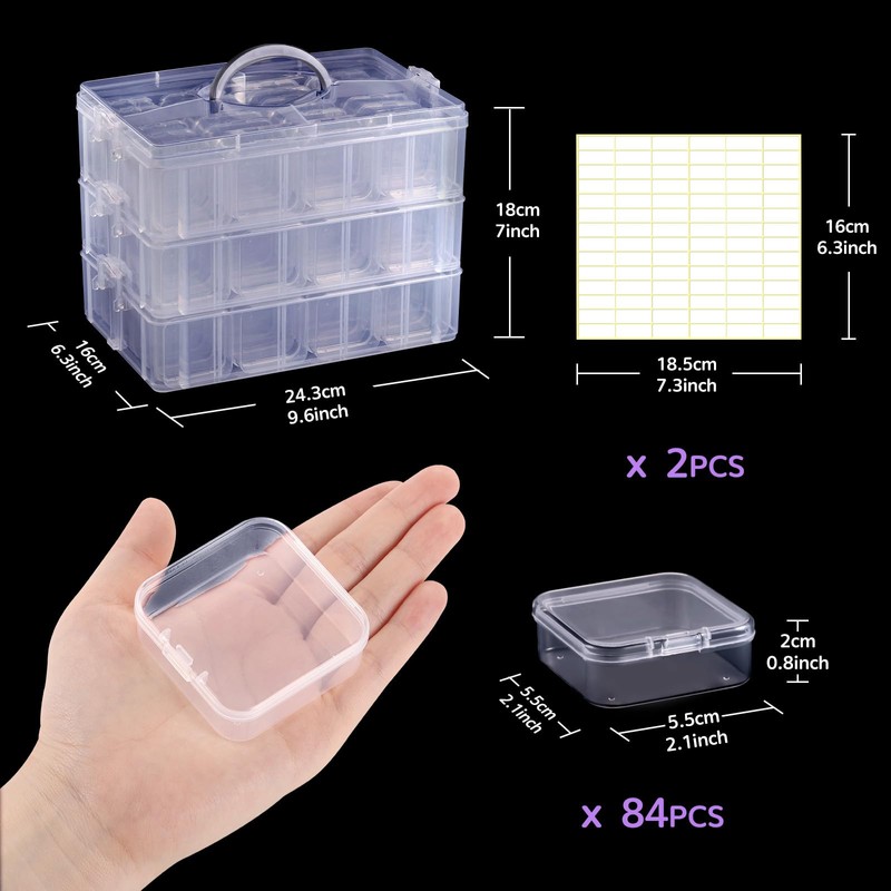 - Effortless Identification: The transparent design of both the outer box and the 84 individual containers provides clear visibility of contents, saving you time; personalize and easily identify each box using the included 2 sticker sheets.
