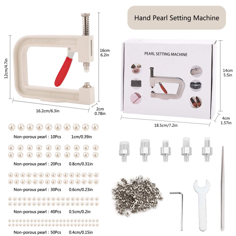 - Package includes: you will get 1 beading machine, 5 different screw heads, 100 pieces hand press nails, 5 different bead sizes, 1 tweezers, 1 wrench