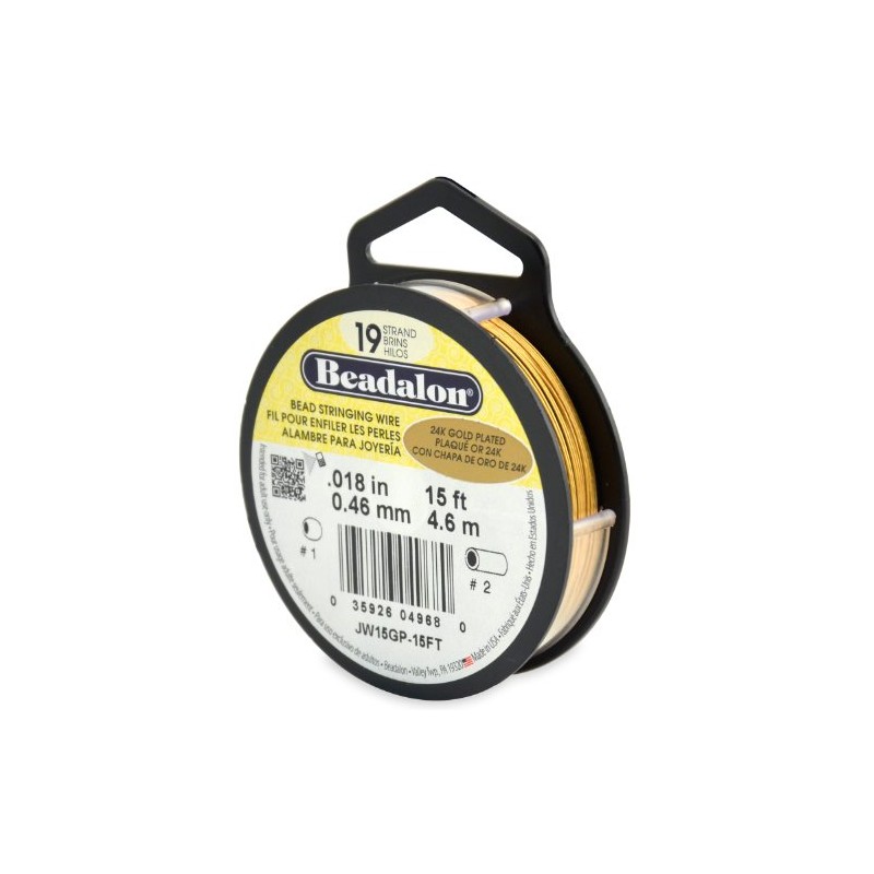 Beadalon 19-Strand Bead Stringing Wire, 0.018-Inch, Gold Plated, 15-Feet