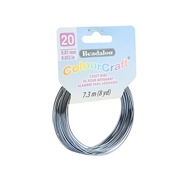 Beadalon ColourCraft Wire, 20 Gauge / 0.81 mm, Grey Color Silver Plated Tarnish Resistant, 7.3 m / 8 yd Coil