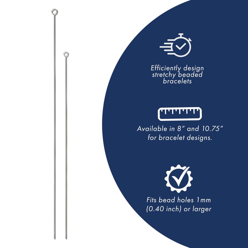 Beadalon Elastic Stretch Cord Beading Needle, Stainless Steel, 8 in Length, 1 pc, Easily Transfer Beads on Stretch Cord