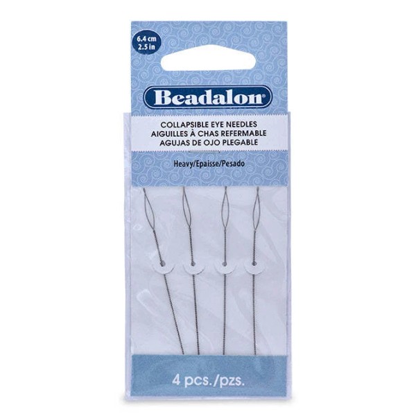 Beadalon Collapsible Eye Needles are flexible and perfect for stringing beads with small holes. Extra spring wire is kink-resistant and has a specially designed eye that automatically collapses and instantly reshapes when pulled through the bead. The large eye is easy to thread and accommodates many sizes of cord.