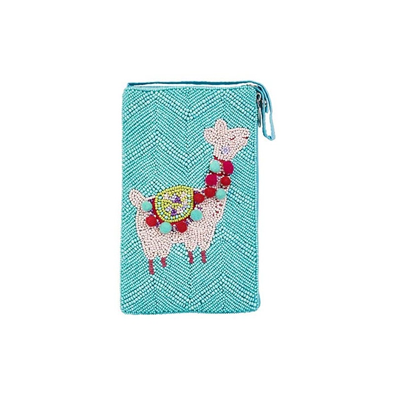 Beaded Club Bag Evening Clutch Purse w/Shoulder Strap (Turquoise - Llama)