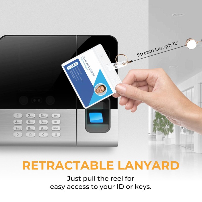 The smooth retractable reel keeps badges/cards accessible yet protected. Includes a sturdy keychain lanyard for keys or small tools.
