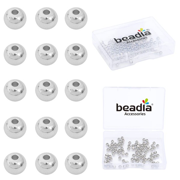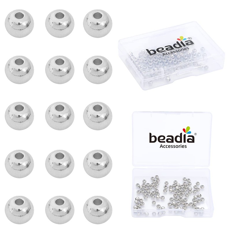 BEADIA Platinum Plated Round Spacer Beads 4mm 100pcs for Jewelry Making Findings Non Tarnish