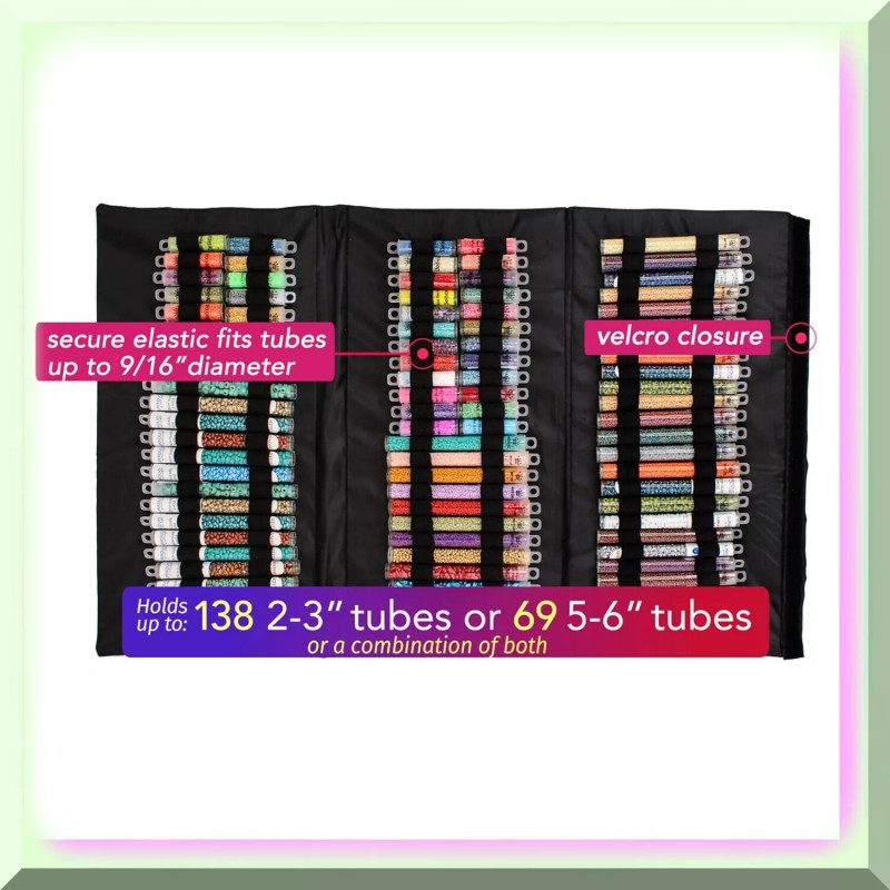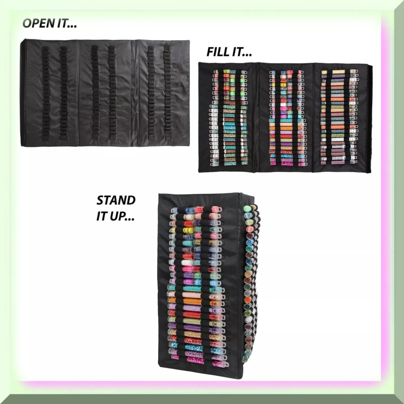 Say goodbye to the chaos of your messy workspace with the magnificent Bead Tube Tower! This storage marvel can accommodate a whopping 138 small 2-3" tubes, 69 large 5-6" tubes, or a delightful assortment of tubes up to 9/16 of an inch in diameter. Crafted from durable plastic and canvas, this tower can stand tall or lay flat, adapting to your needs. And when it's time to tidy up, it folds effortlessly for convenient storage. Plus, it comes with a handy clear zippered travel pouch, ensuring your beads are always ready for an adventure. Get your hands on the ultimate Bead Tube Tower Storage Unit now!---FEATURES:---A) Organized Chaos Conqueror: The Bead Tube Tower is a storage marvel, designed to tame the unruly chaos of your work area. With its sleek and compact design, it effortlessly transforms your cluttered space into a haven of order and efficiency.