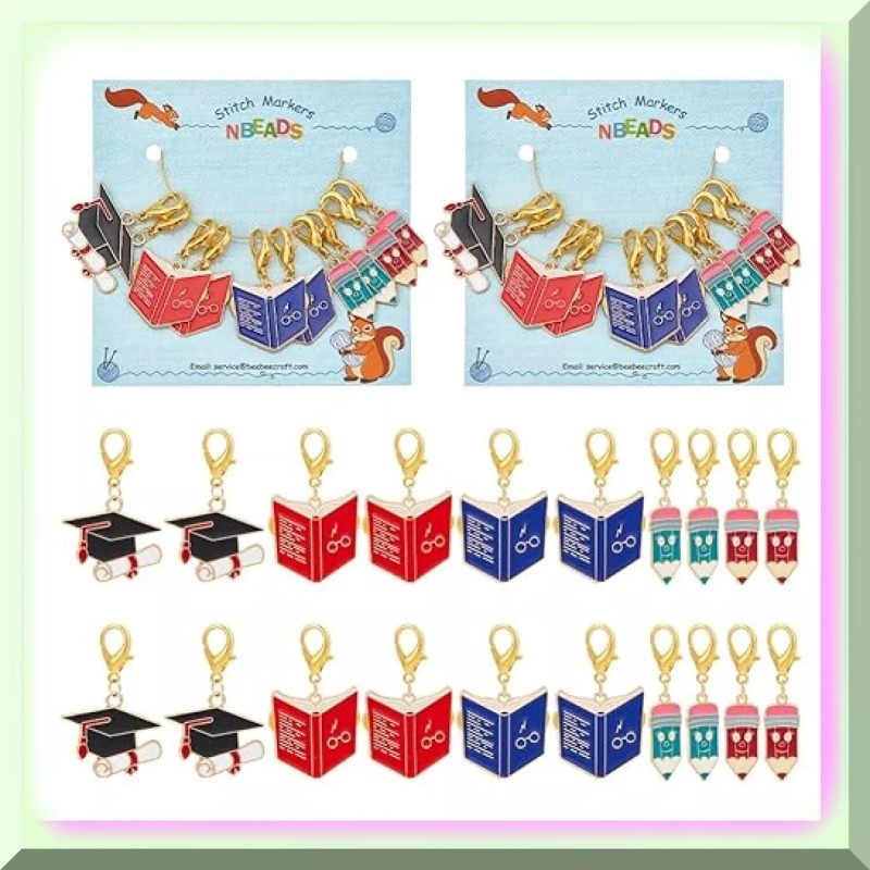 Beadify GradCharm Stitch Markers - 20 Enamel Book/Pencil/Do