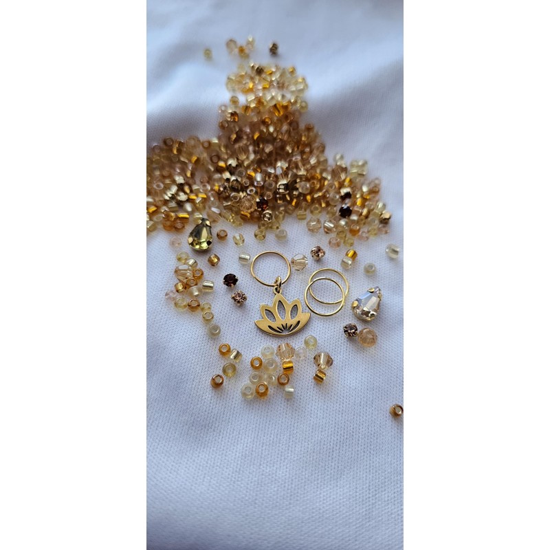 - Add sparkle and style to your locs with our premium Rhinestone Loc Sprinkle Bead Mix! This vibrant mix features high-quality seed beads in a variety of colors, dazzling rhinestones, and eye-catching bicone beads for an extra touch of shine. We’ve also included versatile hair rings, one of which is adorned with a delicate lotus charm for a hint of spiritual beauty.