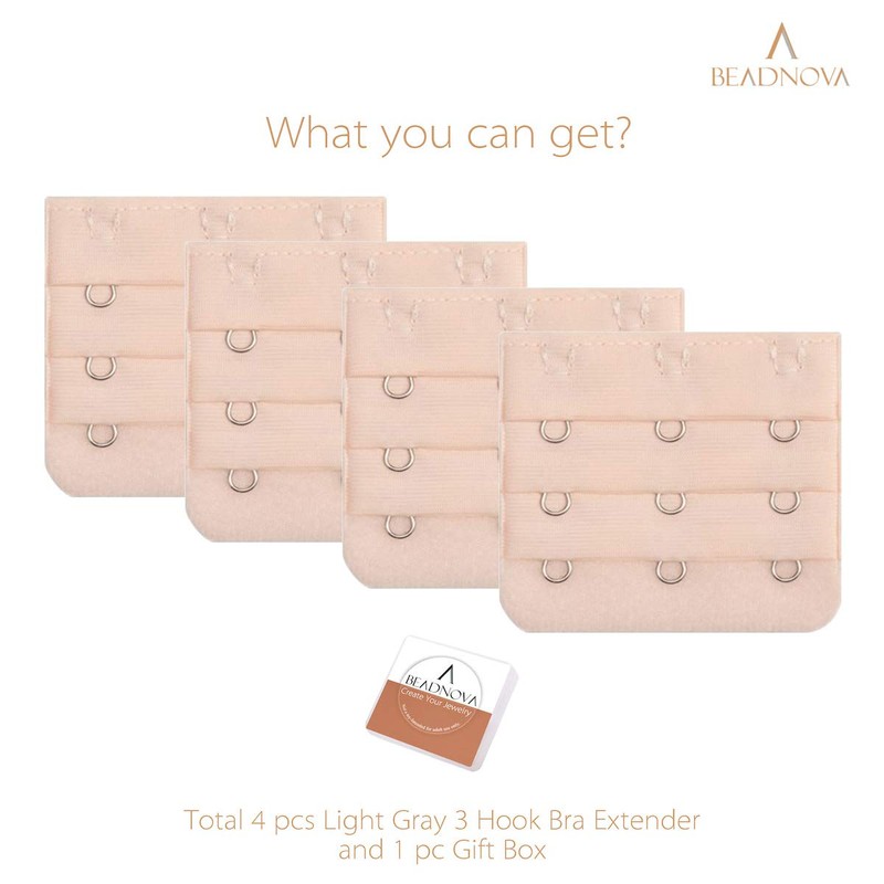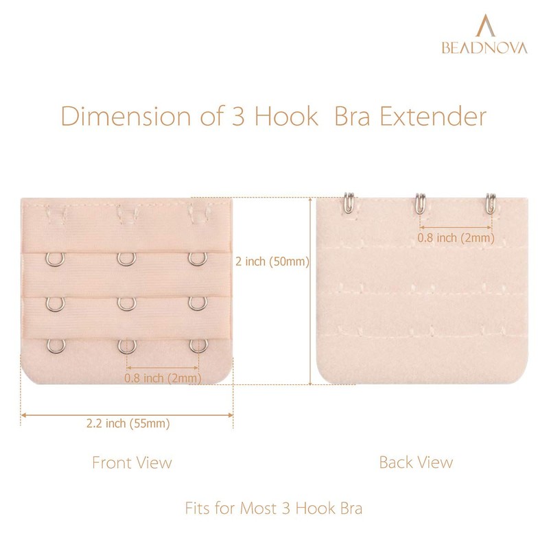 - Size Color and Quantity: 4pcs 3 Hook Bra Extender in Nude Color, 3 hooks 3 rows with 5cm (2inches) long and 5.5cm (2.2inches) wide, length between hook is 2cm (0.8inches). Using Bra Extension to adjust your old bra size for weight gaining , prenancy or bra shinkage.