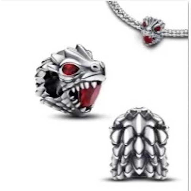 - Game of Thrones Dragon Head Charm Bead in Sterling Silver S925 with Red Crystals signifying Fire from the mouth and glaring red eyes.