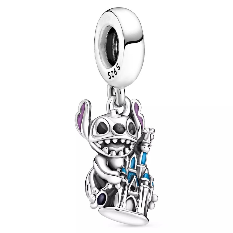 - Sterling silver Stitch and Fantasyland Castle charm Purple, black, and blue enamel detailing