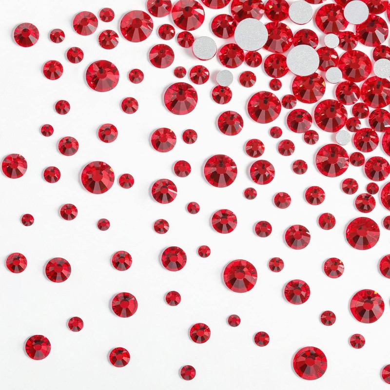 Those light siam flatback rhinestones are made of high quality glass, multi faceted sides, shining and beautiful. 8 sizes nail art rhinestones for choosing, it's perfect combination for your project.