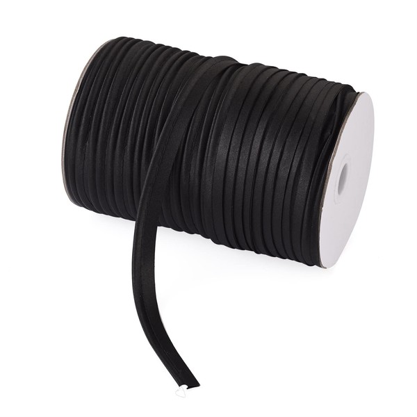 Beadthoven 109Yards/Roll Maxi Piping Trim 3/8” Satin Luster Polyester Single Fold Piping Bias Tape Binding Lip Cord Welting Cord with Spool for Sewing Clothing Trimming Upholstery (Black)
