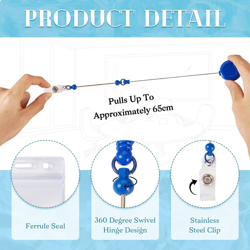 - Easy to Use: These versatile badge reels with belt clips allow you to easily unscrew the fixing beads from the metal rod. Then customize your badge reels by adding your favorite beads or pendants, and twisting it back on. Enjoy DIY fun and showcase your unique style. the retractable reel allows you to easily access your ID badge without taking it out of your bag or clothes.