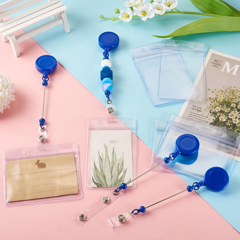 Beadthoven 20Pcs Beadable Badge Reels Making Kit with ID Holder Retractable ID Name Badge Reel with Belt Clip Beaded Blank Keychain Bars Badge Clips for DIY Gifts Teacher Nurse Office Supplies Blue