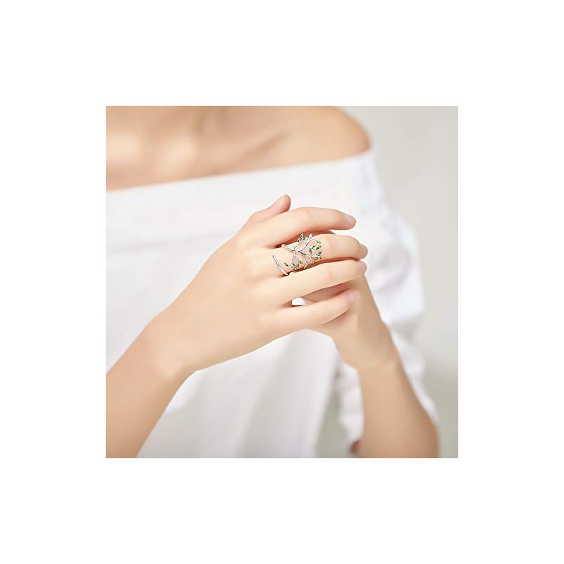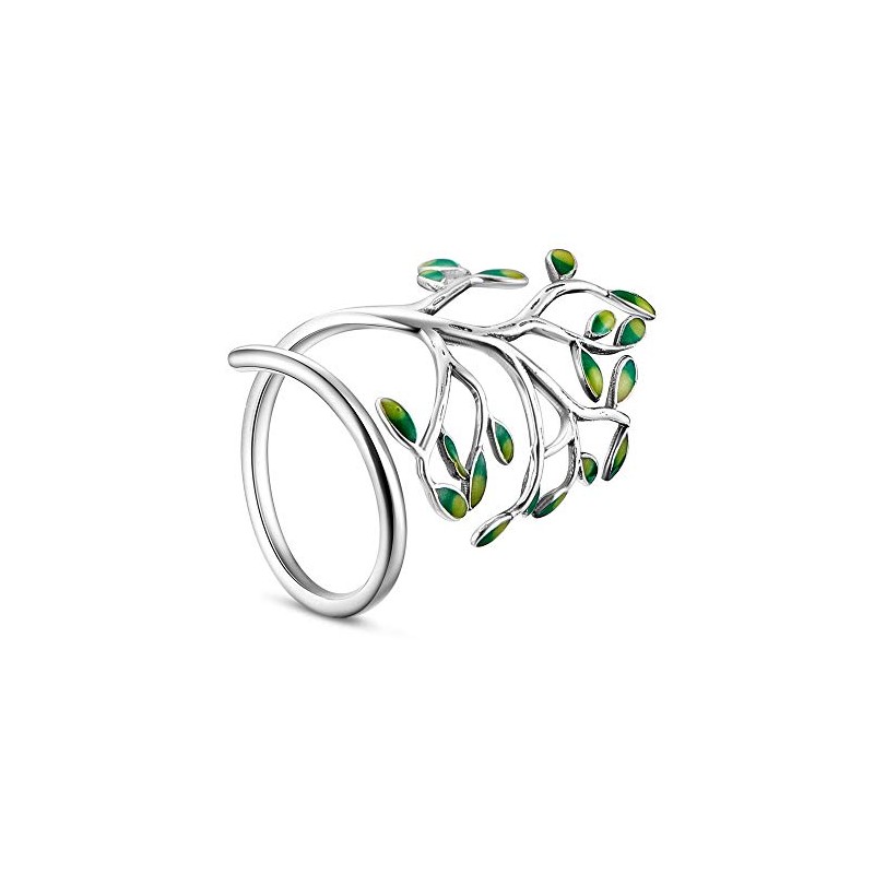 Beadthoven 925 Sterling Silver Enamel Leaves Tree of Life Open Ring Adjustable Ring Size 58