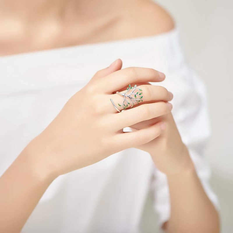 Stylish 925 Sterling Silver Ring Cuff Rings Open Rings with Enamel Tree Platinum