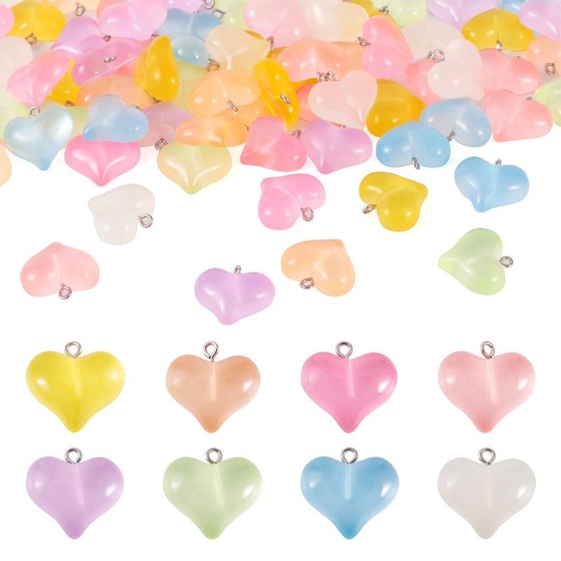 80pcs 8 Colors Luminous Clear Resin Pendants Heart Pendants Glow in the Dark Mixed Color 19x22x8mm, Hole:2mm, 10pcs/color