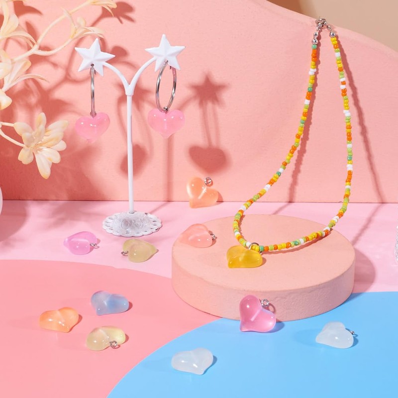- Design:Heart shape pendant,8 colors,with hanging loops and smooth surface, looks plump and cute.