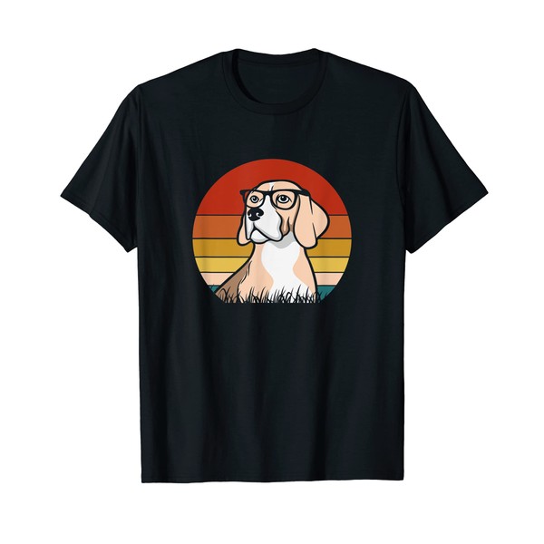 - Retro Beagle clothing design that features a nerd Beagle Puppy wearing glasses and a retro sunset background